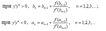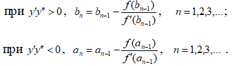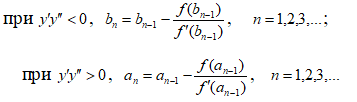 Вкажіть формули методу дотичних (методу Ньютона) уточнення кореня нелінійного рівняння