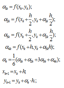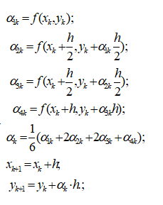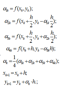 Наведіть формулу розв’язання диференціальних рівнянь за методом Рунге-Кутта..