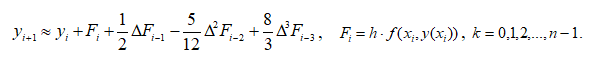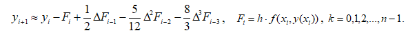 Наведіть формулу Адамса розв’язання диференціальних рівнянь.
