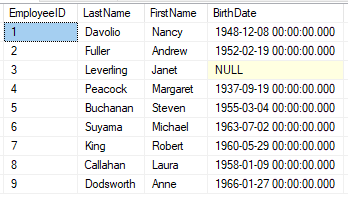 Маємо таблицю Employees з наступними даними: