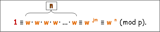 Найменша степінь n , до якої треба піднести елемент w із поля GF(p), щоби отримати «1» має назву «мультиплікативний порядок n» елемента w.