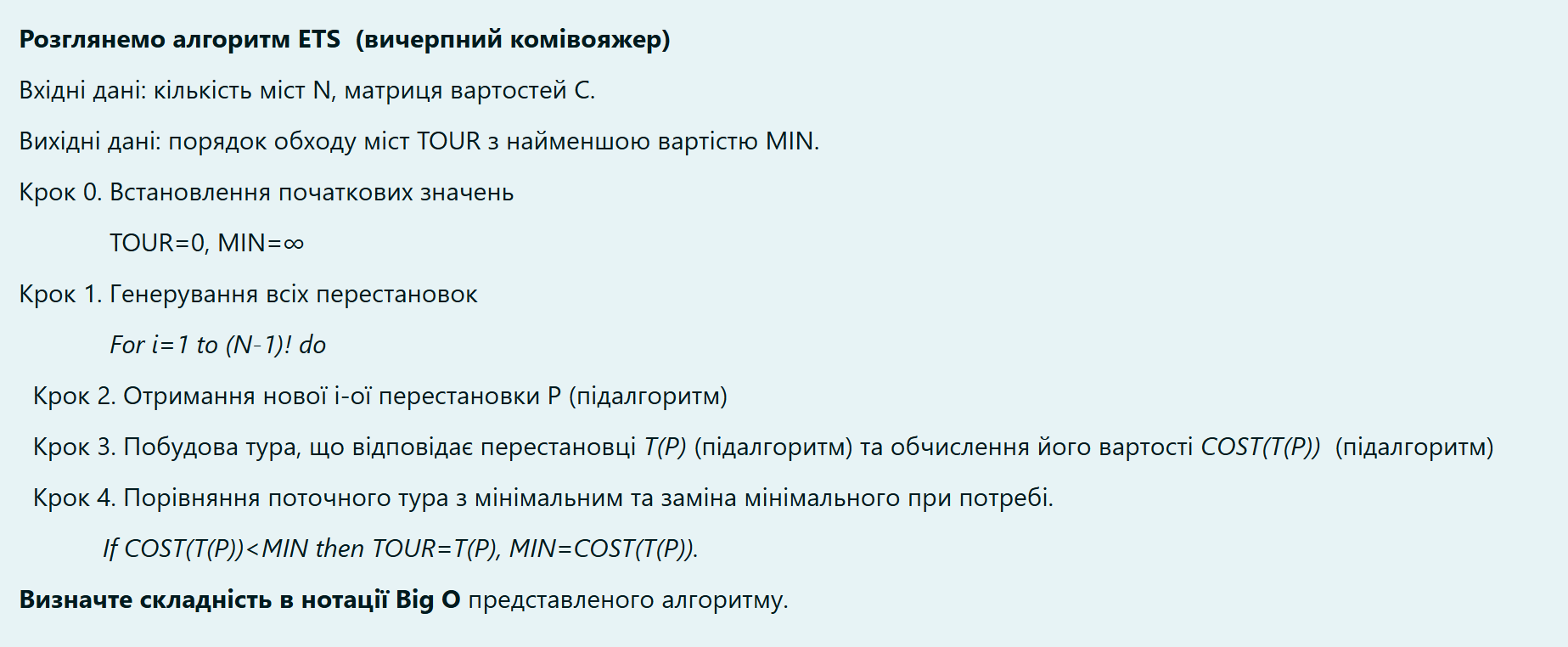 Обчисліть часову складність алгоритму в нотації bigO для наступного коду: