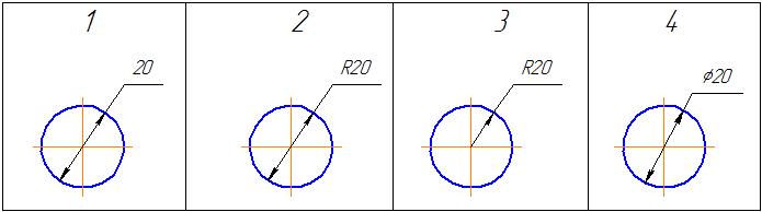 Вказати на якому кресленні вірно нанесено розмір кола.