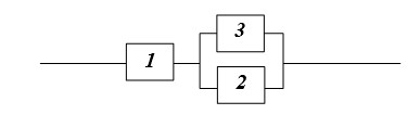 Імовірності безвідмовної роботи елементів №№ 1, 2, 3 електричної схеми відповідно дорівнюють 0,5; 0,9; 0,9. Знайти імовірність проходження сигналу крізь схему