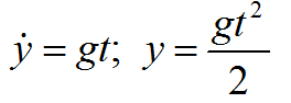 Рівняння, які характеризують вільне падіння тіла (точки) мають вигляд: