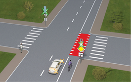 1613. Чи повинен водій автомобіля дати дорогу велосипедисту в даній ситуації?