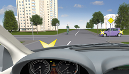 1614. Чи повинен водій автомобіля, повертаючи праворуч на перехресті, дати дорогу велосипедистові, який рухається прямо в попутному напрямку?