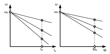 Спосіб регулювання частоти обертання двигуна постійного струму паралельного (незалежного) збудження, для якого характерні наведені швидкісна і механічна характеристики:
