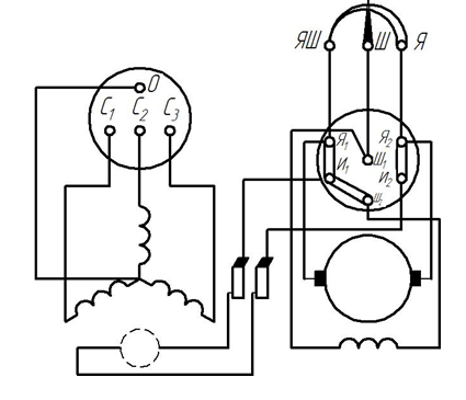 Перерахуйте всі обмотки, з якими з’єднана клема ЯШ за нормального режиму роботи синхронного генератора: