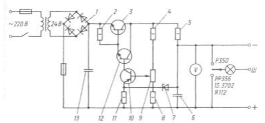 24. Який конденсатор відфільтровує високочастотні імпульси на вході регулятора напруги 13.3702?