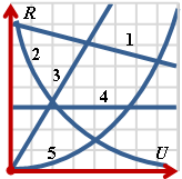 Який графік відповідає залежності опору провідника від напруги на ньому?