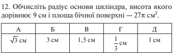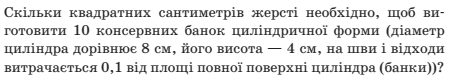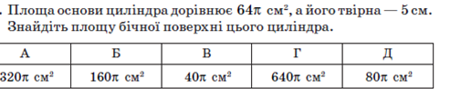 Радіус основи циліндра дорівнює 4 см, а площа осьового пере­різу — 9 см2. Знайдіть    площу повної поверхні циліндра.