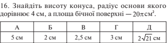Радіус основи циліндра дорівнює 4 см, а площа осьового перерізу — 9 см2. Знайдіть площу повної поверхні циліндра.