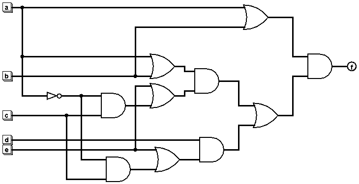 Escribe la expresión booleana que implementa el circuito siguiente (no es necesario simplificar la función):