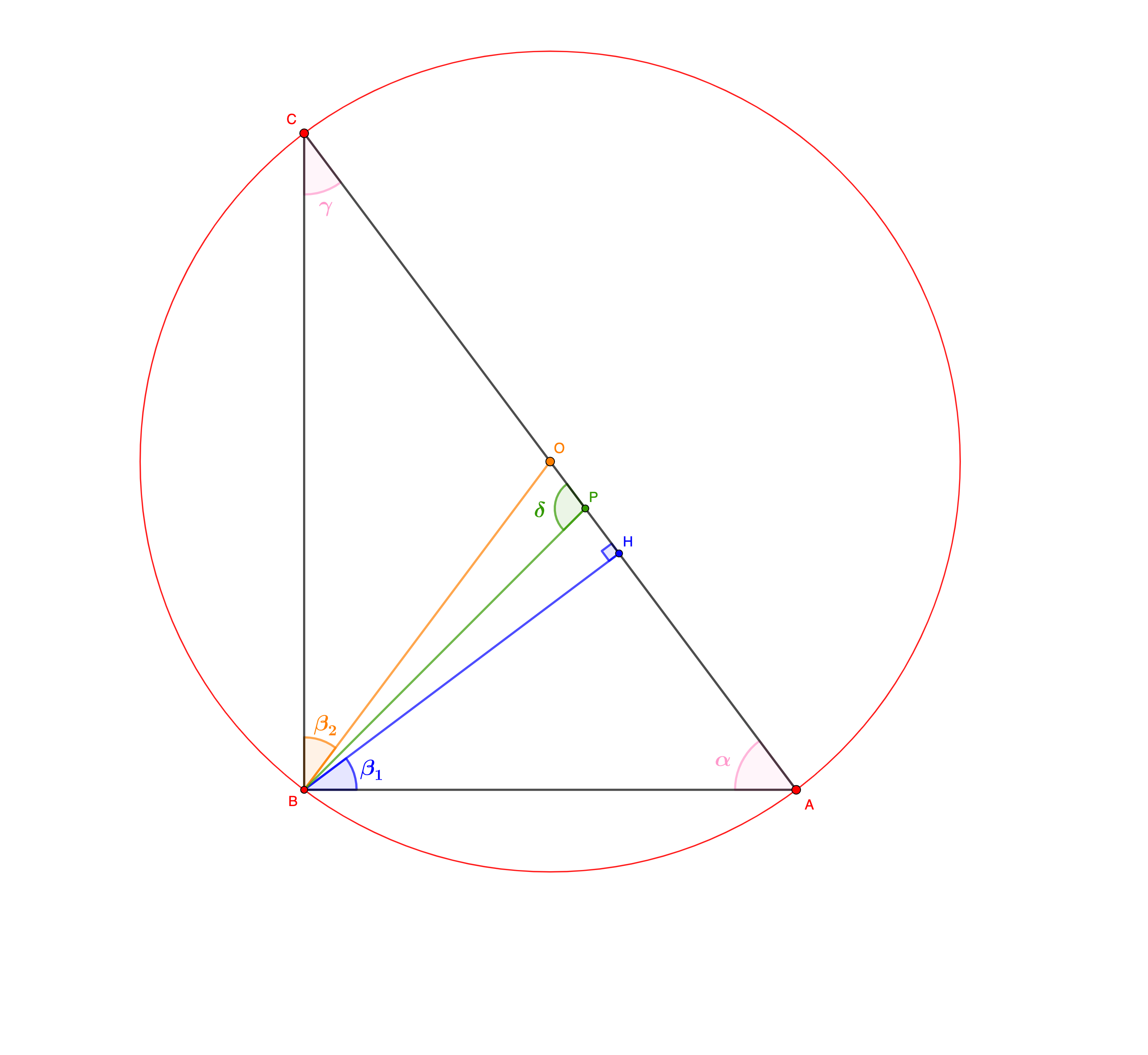 Consideriamo nel piano Euclideo un triangolo di vertici , , inscritto in una circonferenza di centro e diametro . Prendiamo poi due punti tali che giaccia sulla bisettrice dell'angolo e sia ortogonale al lato . Denotiamo poi gli angoli come nella seguente immagine.