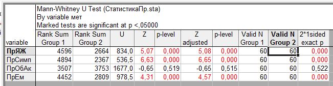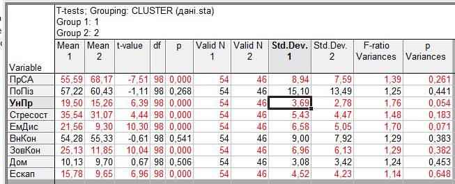 Вкажіть змінні, рівні показників яких достовірно відрізняються.