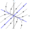 Вкажіть динамічну систему, яка має особливу точку такого ж типу, як на малюнку?