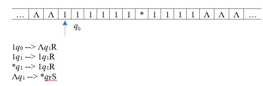 Що реалізує така машина Тьюрінга, якщо головка знаходиться ліворуч?