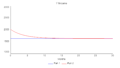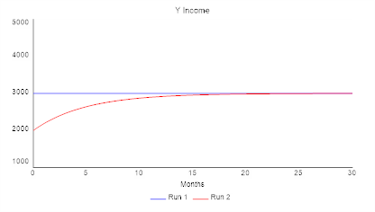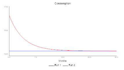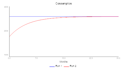 Income short-run adjustment : ΔY(t+1) = 0.5 (E(t) – Y(t))