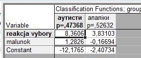 Класифікаційні функції дискримінантного аналізу задано таблицею