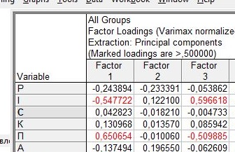 Фрагмент матриці факторних навантажень має вигляд