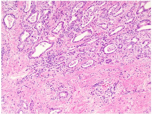 Se muestra una imagen de la biopsia endoscópica de un hombre de 60 años con antecedentes de reflujo gastroesofágico y la biopsia se etiqueta como unión gastroesofágica. No se proporciona el informe de endoscopia. ¿Cómo cerrarías el caso?
