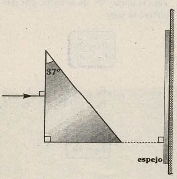 Um prisma transparente, cujo índice de refração é igual a , está situado em frente a um espelho plano. Determine o ângulo de desvio do raio refletido no espelho com relação ao raio incidente sobre o prisma.