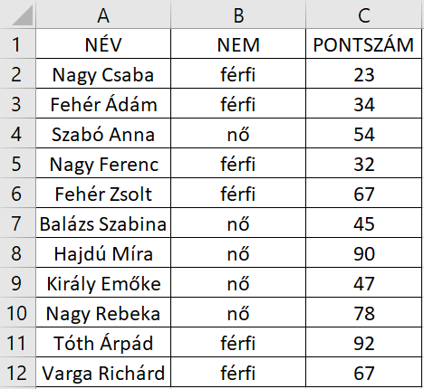Az alábbiak közül melyik függvényhívás adja eredményül Nagy Rebeka pontszámát?