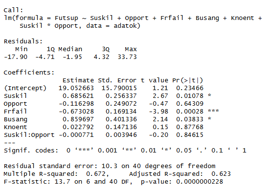 Az alábbi regressziós modell a vállalkozási szándékot (Futsup) magyarázza a felnőtt lakosság jellemzői alapján: