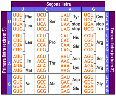 Nota important: En escriure la resposta indica els aminoàcids exactament tal com estan al codi genètic (Cys) i deixa un espai en blanc entre cada un d'ells.