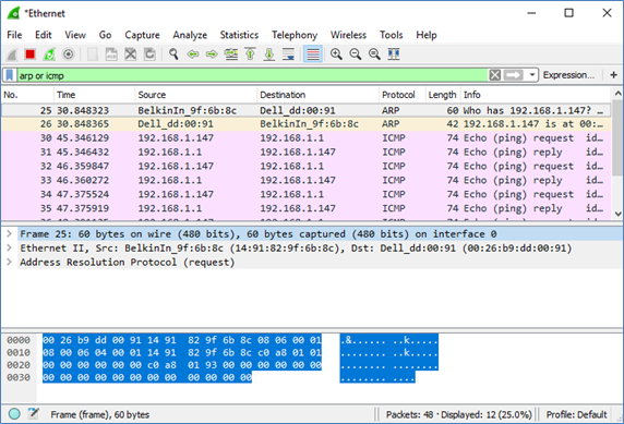 Dada la siguiente captura de Wireshar, ¿Cuántos bytes ocupa la trama número 30?