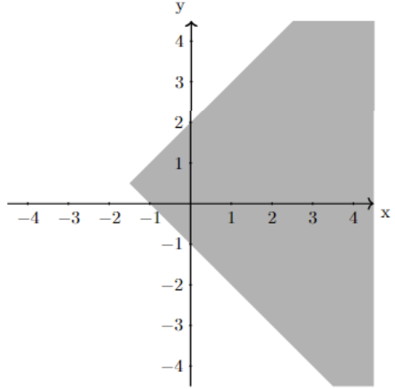 La zone grisée de quel graphique correspond à l'ensemble de définition suivant ?