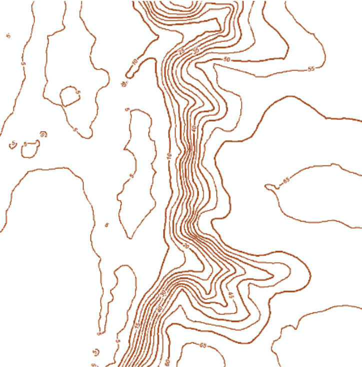 Soit la carte suivante représentant des lignes de niveau autour de la ville de Bordeaux.