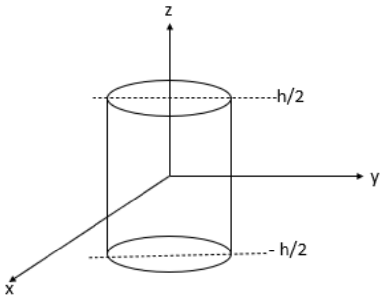 On considère un cylindre d'axe (Oz), de rayon R et de hauteur h chargé en volume par une densité volumique de charge .
