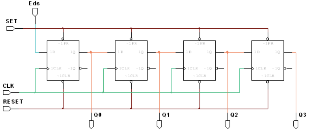 On considère le circuit ci-dessous où les bascules D sont configurées de la manière suivante :