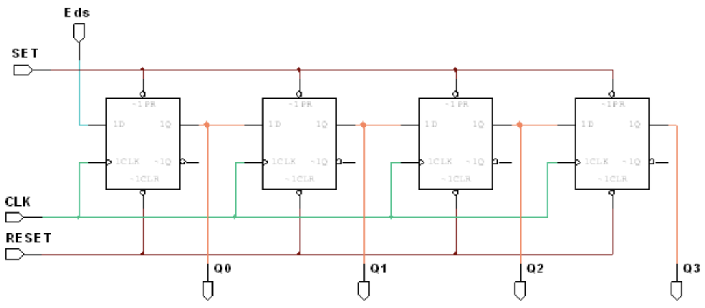 On considère le circuit ci-dessous où les bascules D sont configurées de la manière suivante :
