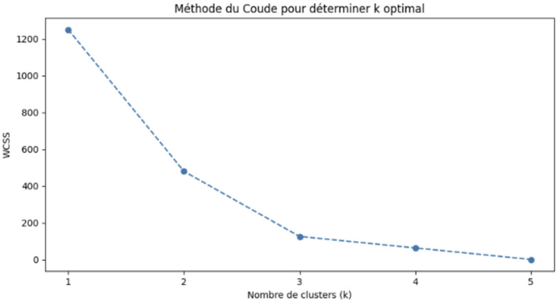 En utilisant le graphique suivant résultant de l’application de la méthode du coude au jeu de données ci-dessus, quel est le nombre de clusters optimal pour appliquer l’algorithme Kmeans?
