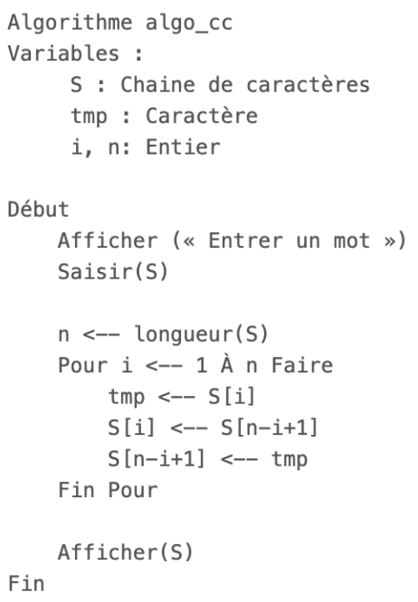 Soit l'algorithme suivant. Quelle est la sortie de l'algorithme si l'utilisateur saisit « BONJOUR » ?
