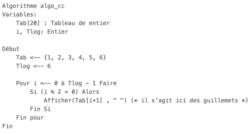 Quelle est la sortie de l'algorithme ci-dessous ?