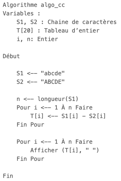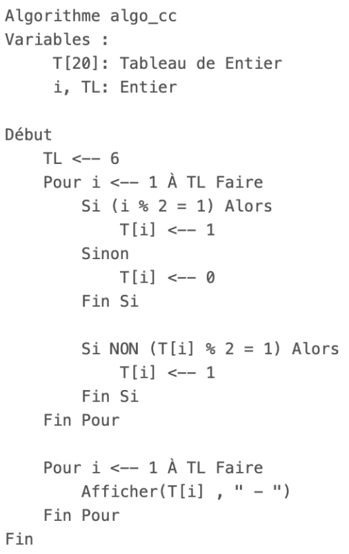 Quelle est la sortie de l'algorithme suivant ?