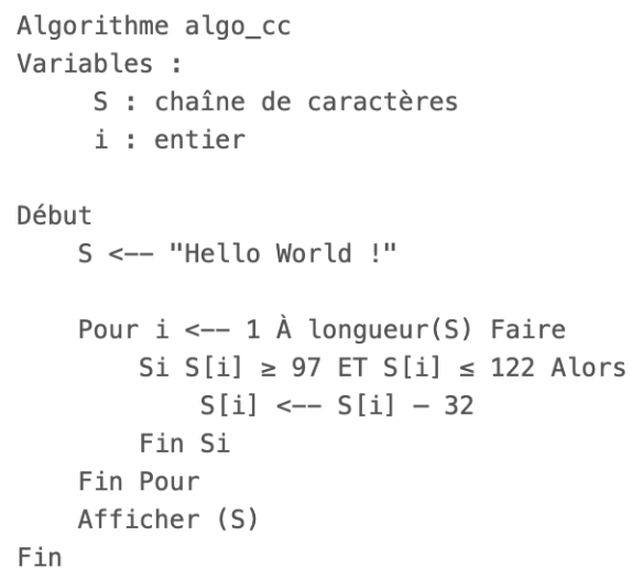 Soit l'algorithme suivant. Quel mot doit saisir l'utilisateur pour avoir en sortie le mot « PYTHON » ?