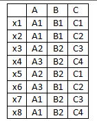 Zakladając, że funkcja informacji systemu informacyjnego S przedstawiona jest w tabeli odpowiedz ile termów elementarnych będzie stanowiło sumę po normalizacji termu składowego t = (A,A1)(B,B2) ?