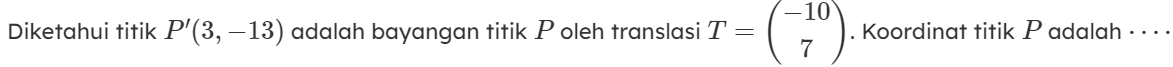 Titik (-3,-4) direfleksikan ke garis x=-2 hasilnya adalah titik ....