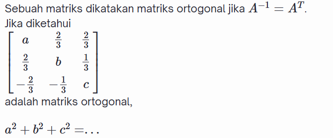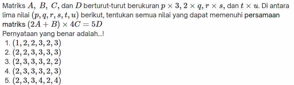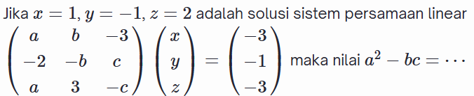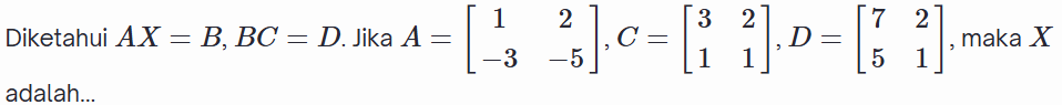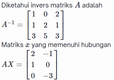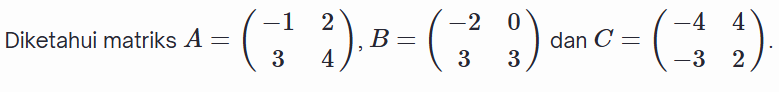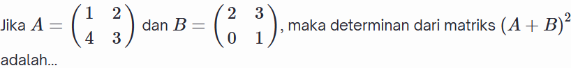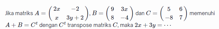 Jumlah nilai semua elemen/entri dari matriks tersebut adalah ....