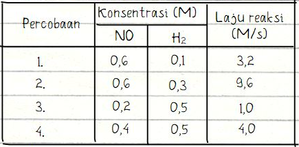 Maka orde reaksi total untuk persamaan reaksi berikut adalah .....