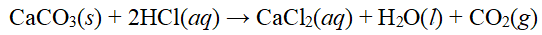 CaCO3(s) + 2HCl(aq) --> CaCl2(aq) + H2O(l) + CO2(g)