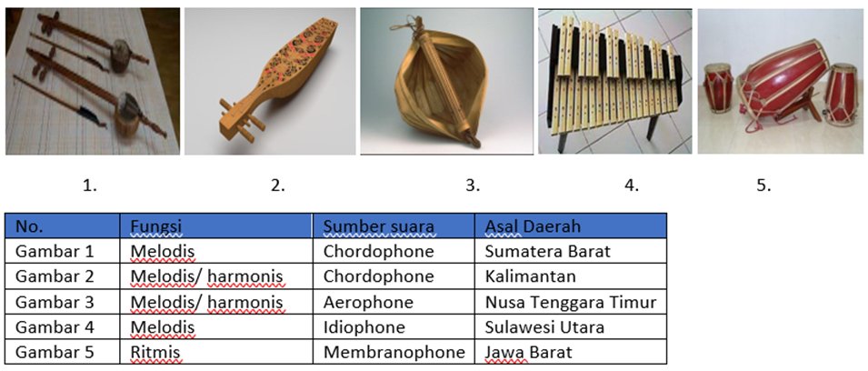 Perhatikan table instrument tradisional Indonesia di bawah ini: