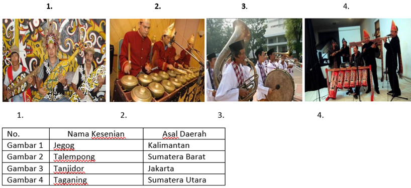 Perhatikan jenis kesenian daerah Nusantara & tabel di bawah ini: