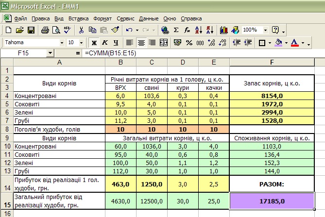Якщо метою задачі є встановлення оптимального плану перевезення кормів на ферми в умовах мінімальних транспортних витрат, то цільовою функцією, відповідно, є обсяг транспортних витрат, а напрямом оптимізації – його максимізація.