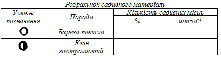 Розрахуйте кількість садивного (посадкового) матеріалу для полезахисної смуги за наведеною схемою змішування
